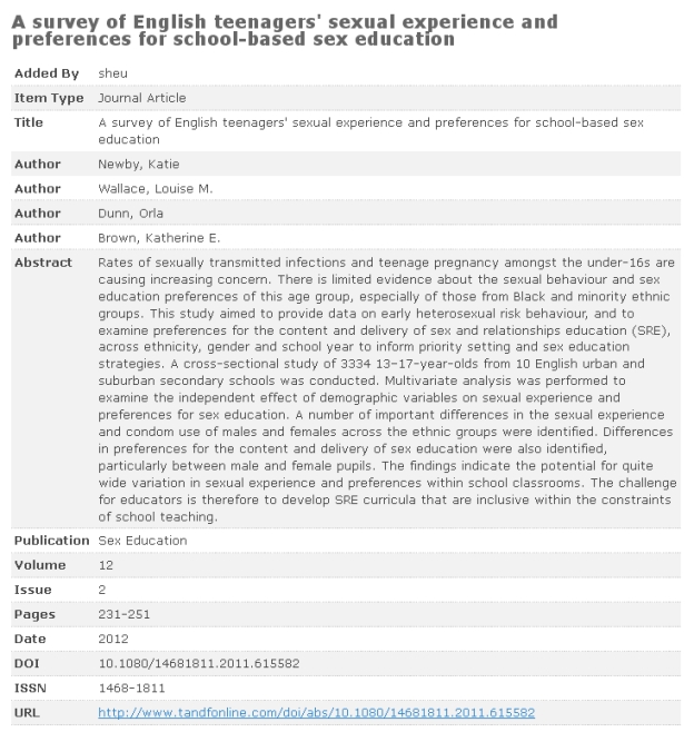 SHEU Literature Search Sex Education