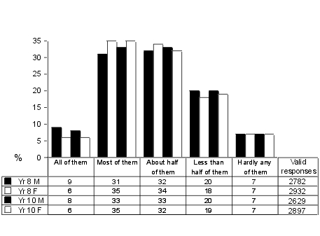 Chart 1 shows responses to the five points on the 'All of them' to 'Hardly any' scale.